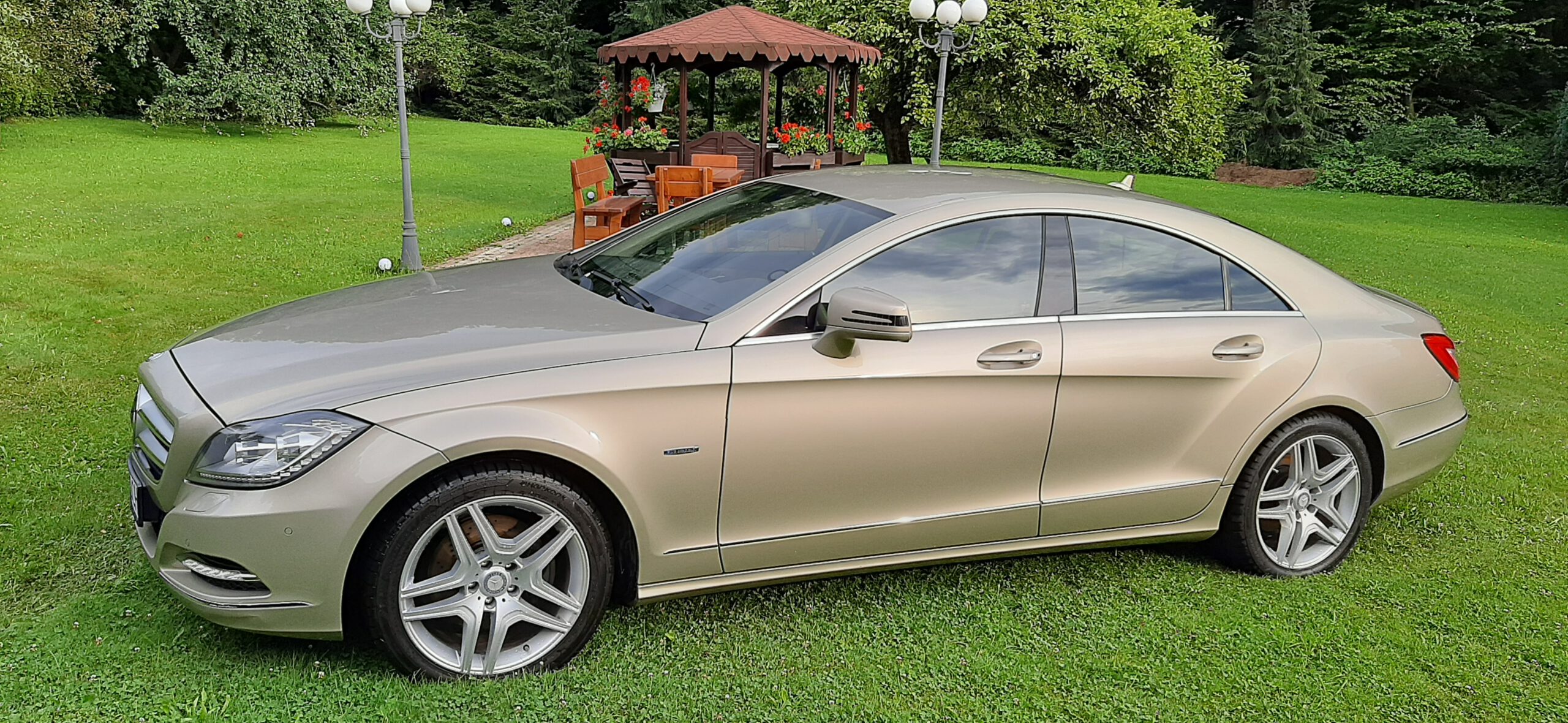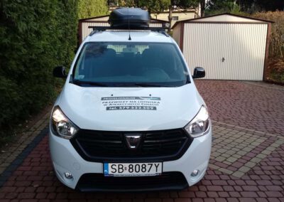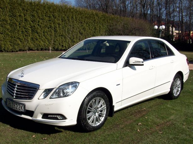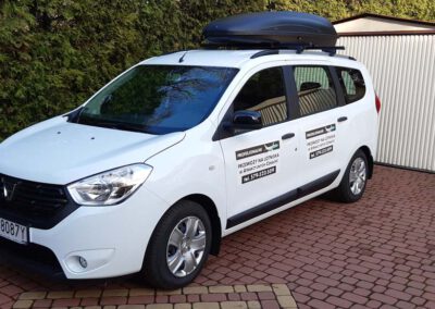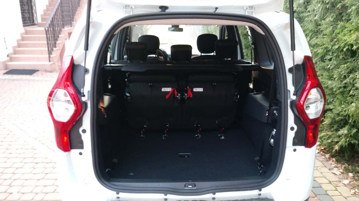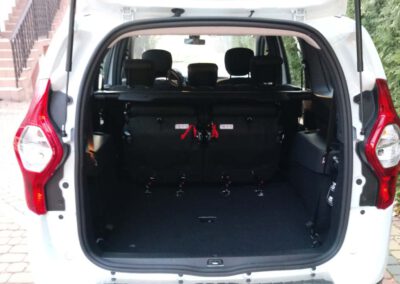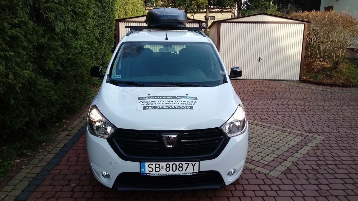 A new one, bought in a Polish car showroom, comfortable with a spacious trunk and additional roof trunk